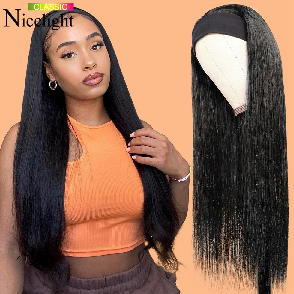 - Nicelight Indische Gerade Haar Stirnband Perücke Glueless Menschenhaar Perücken Echt Haaransatz Schal Perücke Fit Alle Größe Kopf Für Schwarz frauen