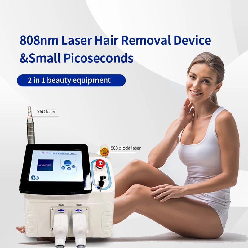 - 2 in 1 tragbare 808nm diode laser + pikosekunden laser maschine für professionelle haar entfernung haut kosmetische tattoo/pigment entfernung