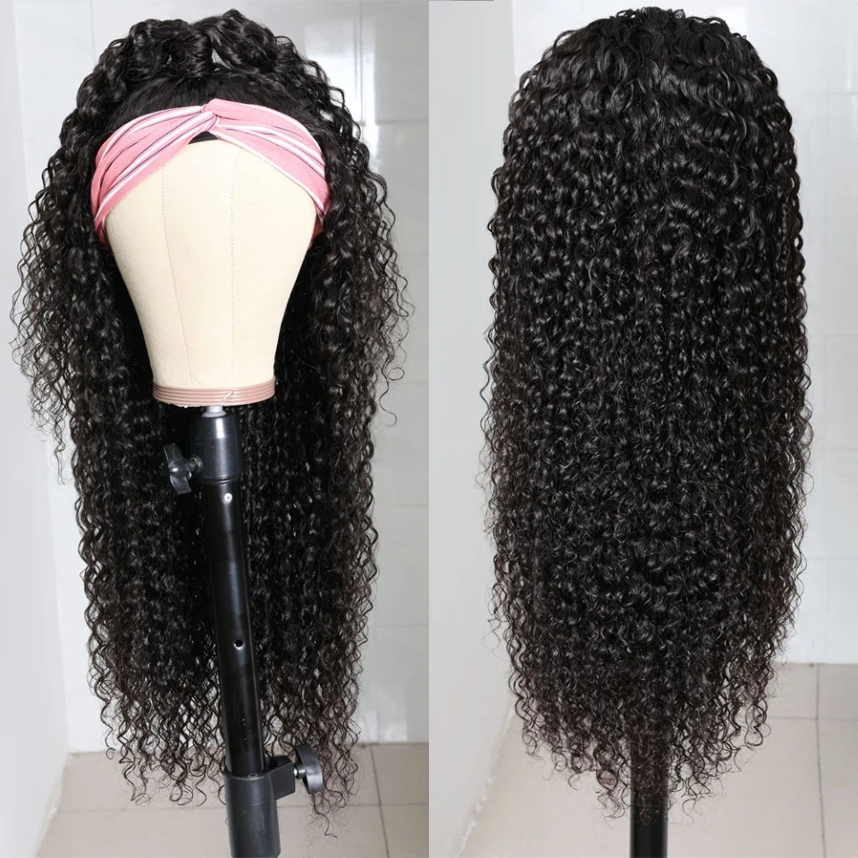 - Lockiges Haar Stirnband Schal Perücke Glueless Brasilianische Remy Menschenhaar Perücken für Frauen Maschine Gemacht Anfänger Freundliche Fit Alle Größe kopf