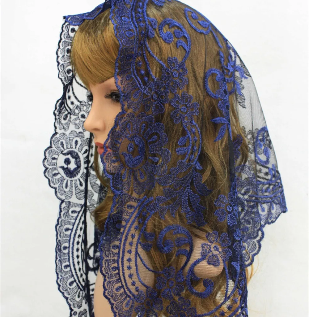 - Dreieckige Stickerei Kirche Katholischen Schleier Schal Latin Masse Kopf Abdeckt Spanisch Spitze Mantilla Einzelhandel