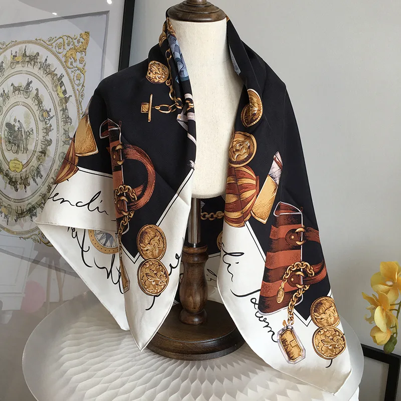 - Vintage Print 100% Seide Kopf Schals für Haar Einwickeln Großen Platz Silk Schal Wraps Foulard 35 “x 35”