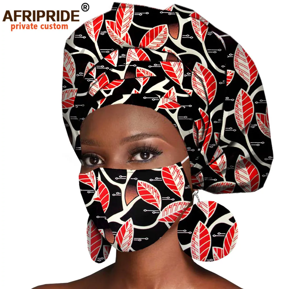 - African Headwrap Ohrringe Haar Zubehör Schal Motorhaube Ankara Wachs Stoff Kopf Turban Afrikanische Kopftuch Maske Spiel Drucken A20H004