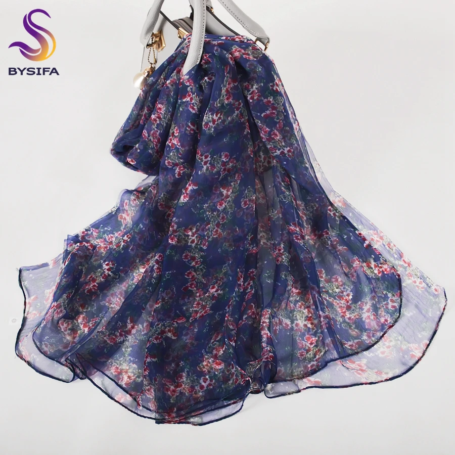 - BYSIFA | Blau Rot Seide Schal Mode Süße Stil Lange Schals Neck Schals Frühling Herbst Marke Zubehör Kopf Schal Hijab 170*100